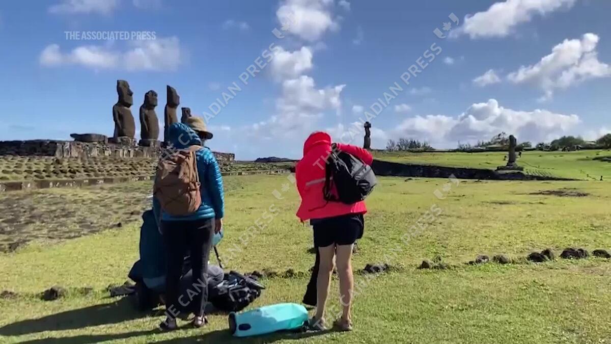 CP173256522 | Tourists enjoy 'chance of a lifetime' eclipse by ancient Moais on Easter Island