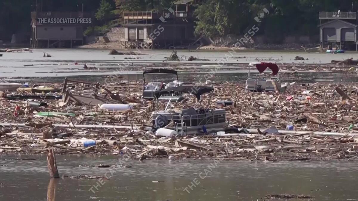 A mass of debris covers North Carolina's Lake Lure days after Hurricane Helene