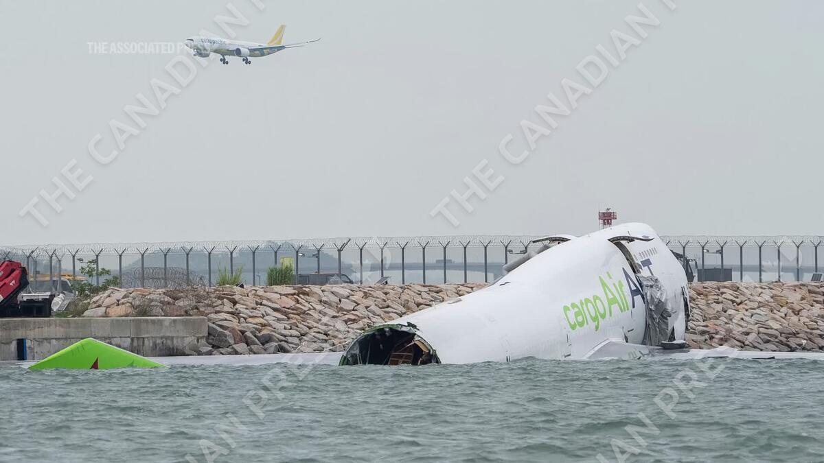 CP175184265 | Cargo plane skids off Hong Kong runway into sea during landing, killing 2 people