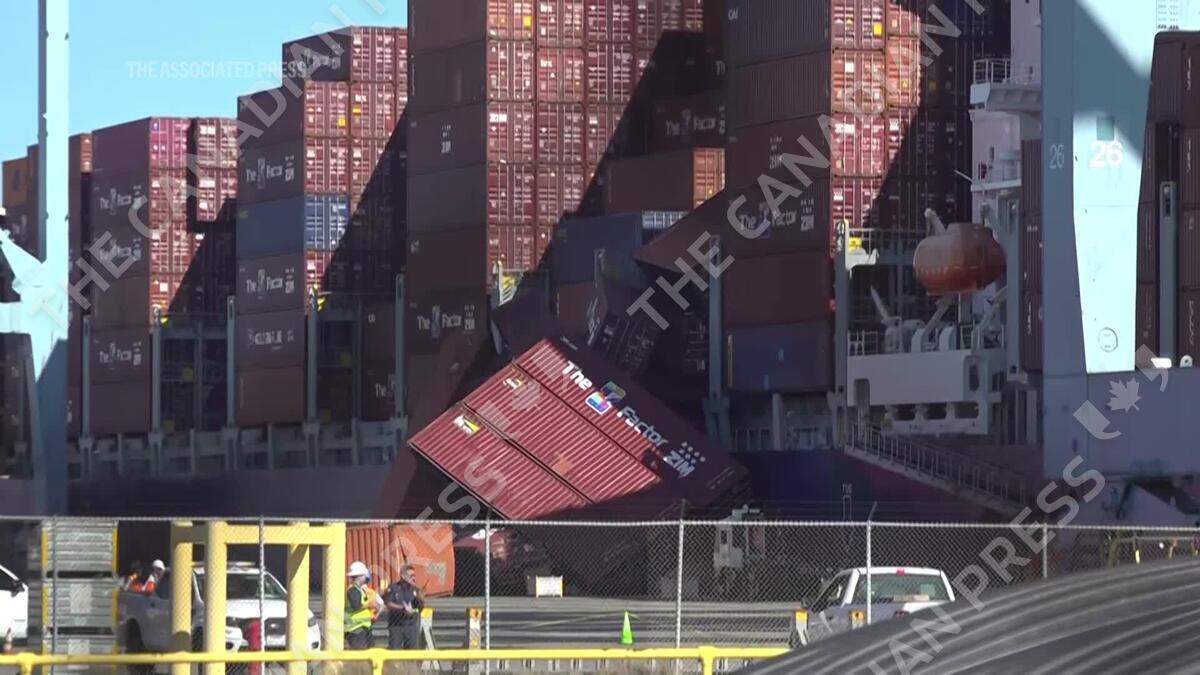Dozens of containers have toppled off a cargo ship in the Port of Long Beach