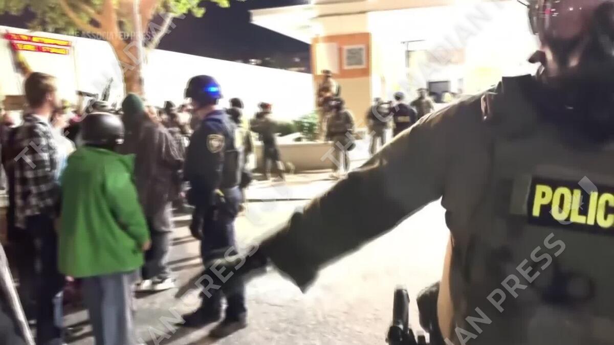 CP174637840 | Police and protesters clash outside federal detention center in LA after ICE raids
