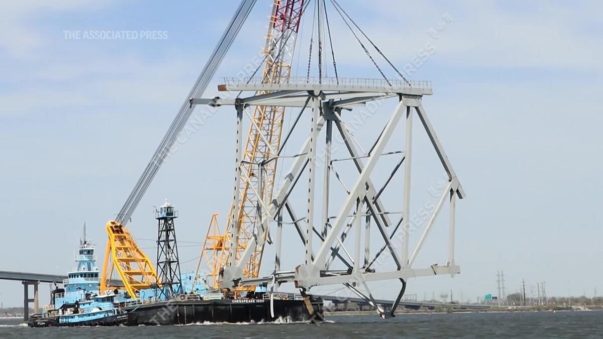CP171306456 | Largest remaining steel span of collapsed Baltimore bridge comes down in controlled demolition