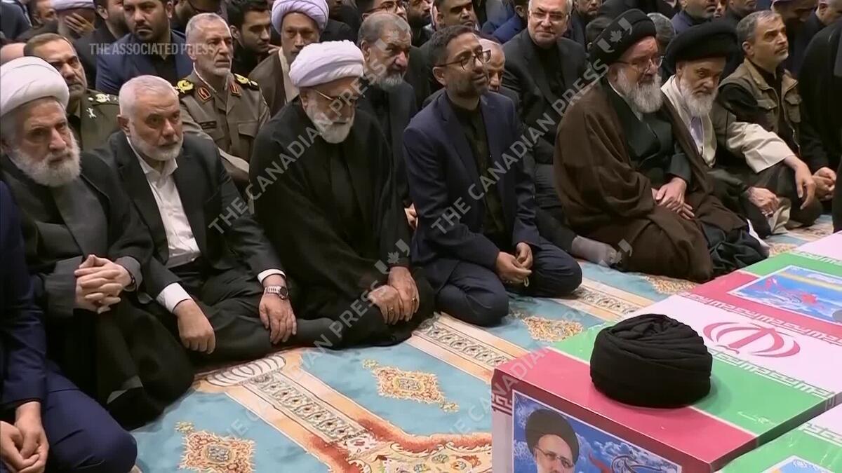 Iran's Supreme Leader and Hamas chief at funeral ceremony for Iranian president