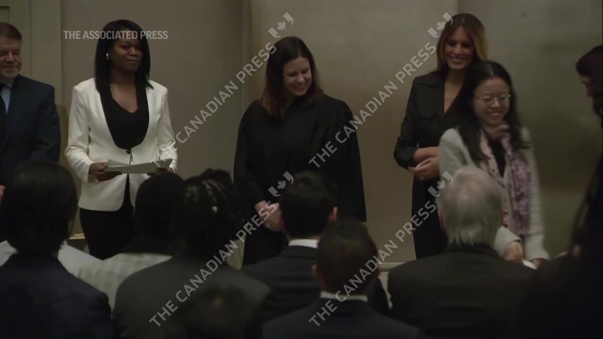 CP175370023 | US first lady Melania Trump welcomes 'beautiful' Christmas tree to White House