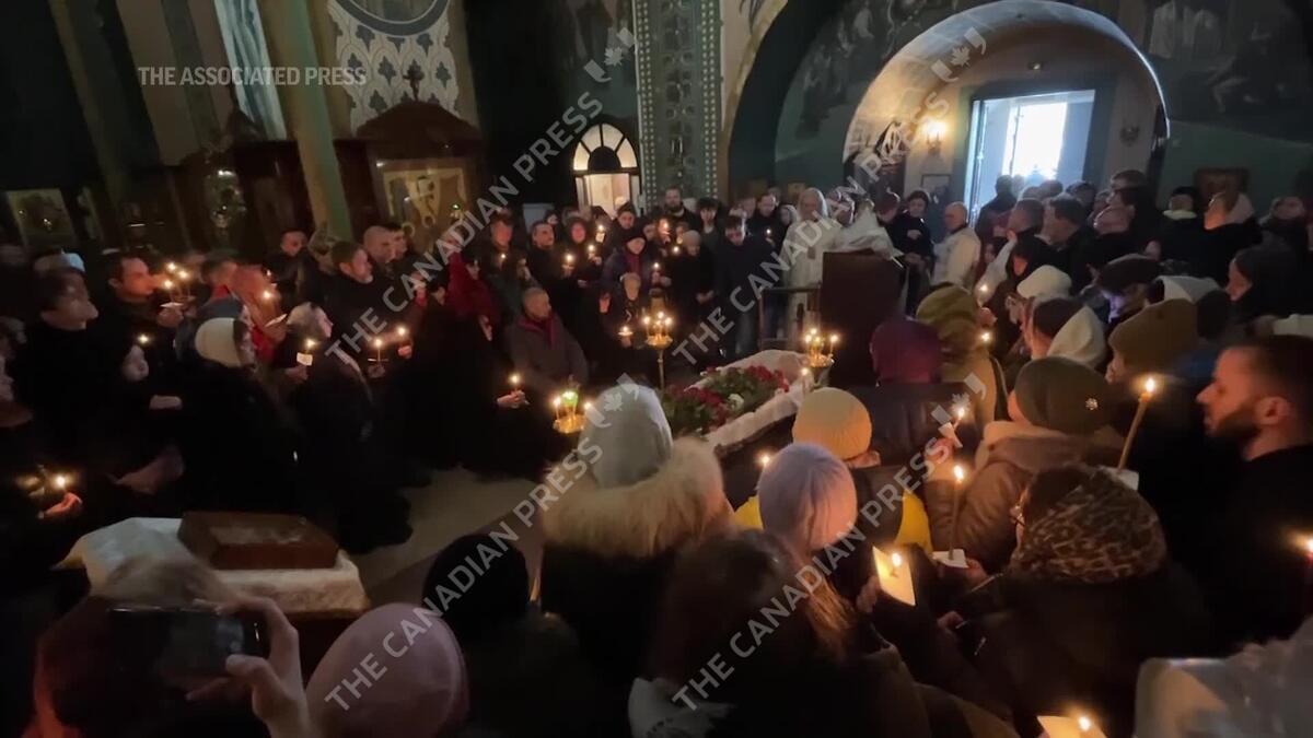 Scenes inside Moscow church during farewell ceremony for opposition leader Navalny